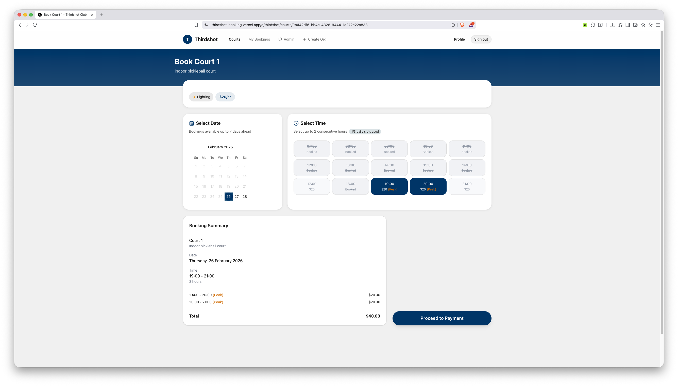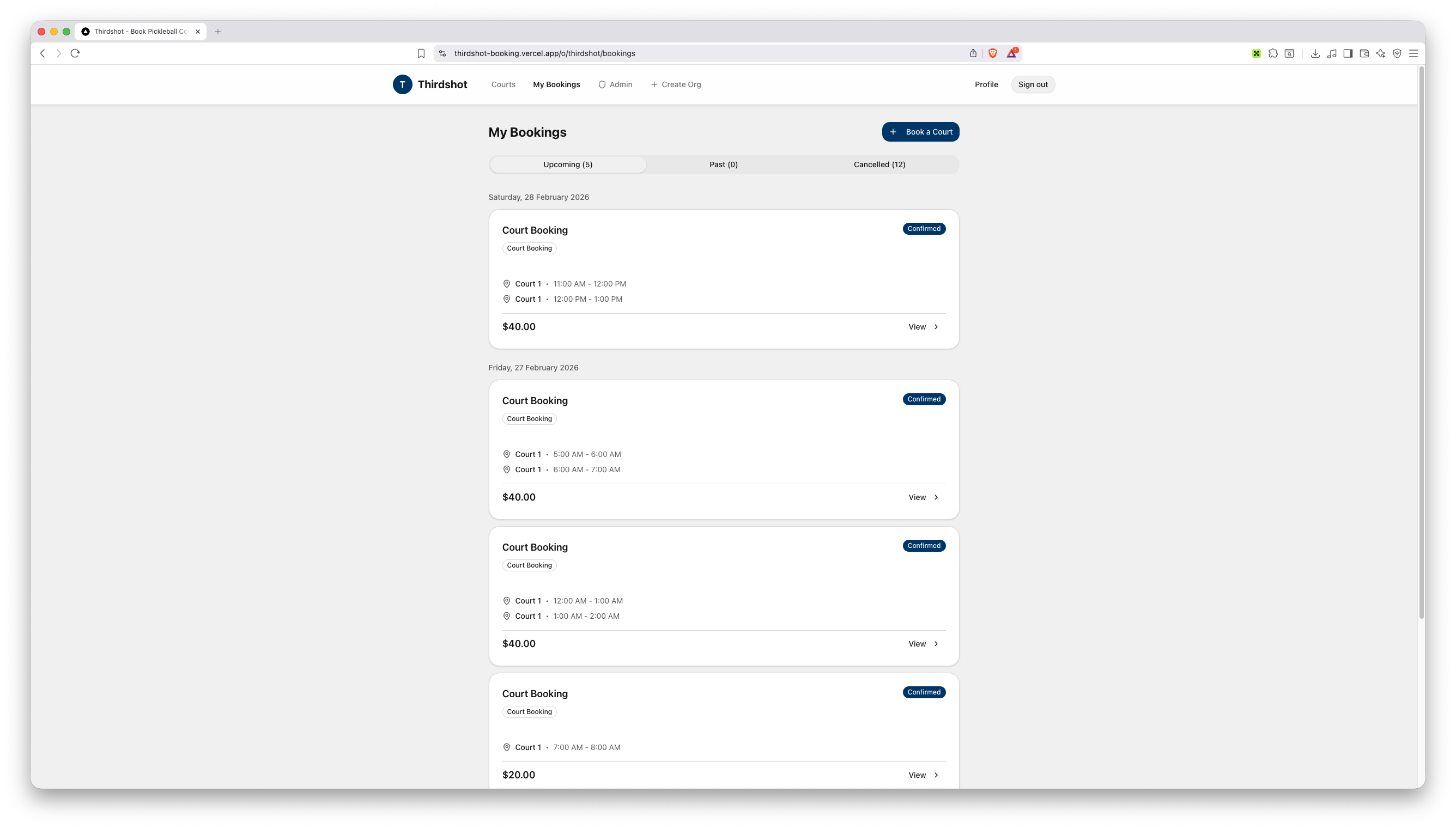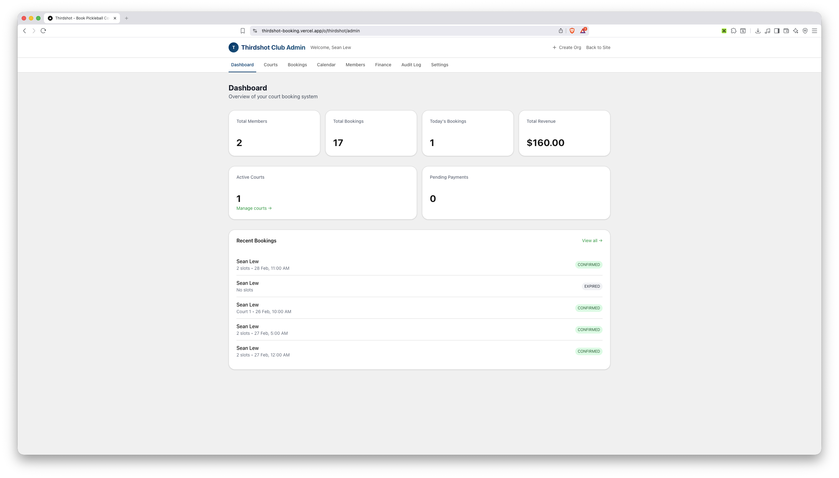 Delivered a fully functional multi-tenant booking platform serving multiple clubs under unique URL slugs. Features include real-time court availability, integrated PayNow payments with automatic slot release on timeout, saved payment methods, member management with tiered memberships, recurring bookings, and a comprehensive admin dashboard for club operators.